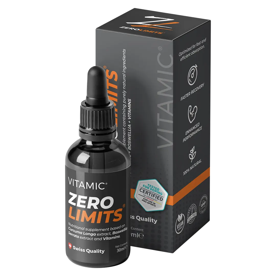 VITAMIC ZEROLIMITS® includes 100% natural ingredients such as Curcumin, Boswellia Serrata, Vitamin C, and a Vitamin B complex. These have an extremely high bioavailability and therefore have many health benefits.